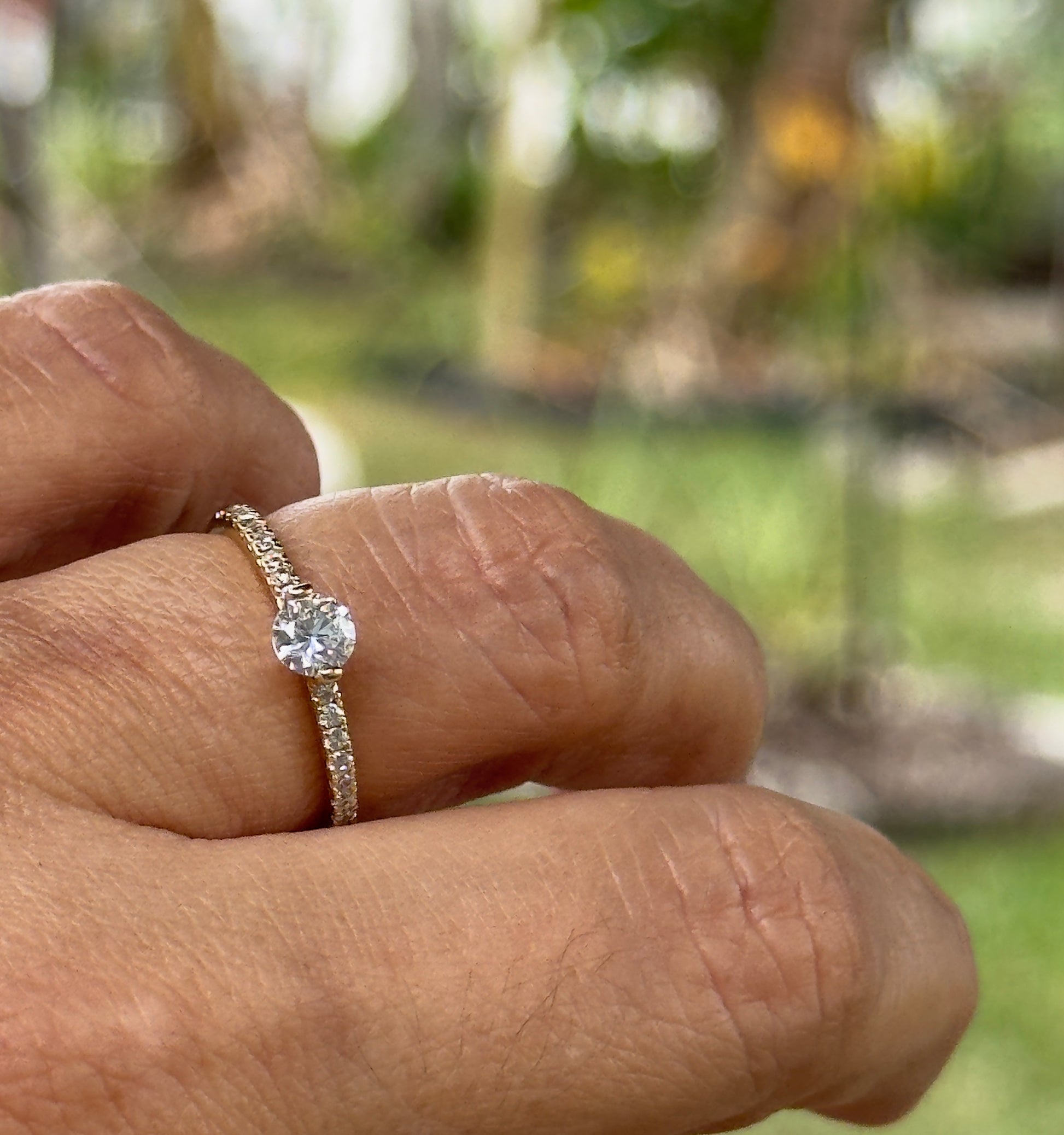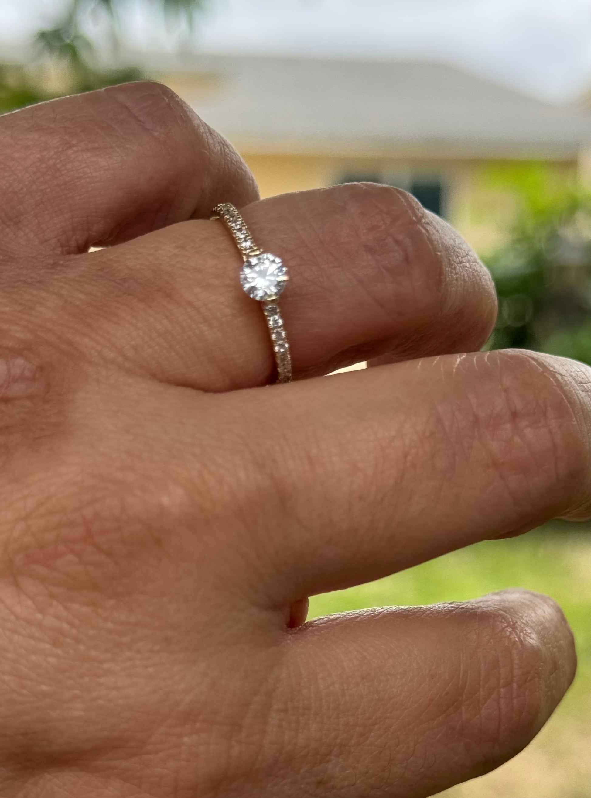 Round Cut CZ Solitaire Ring – 14KT Gold Plated Waterproof Pavé Band Ring